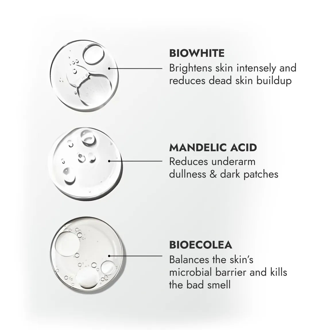 Our Underarm Brightening Roll-On Serum is designed to address uneven skin tone and dark patches in the underarm area. The combination of Mandelic Acid, Bioecolea, and BioWhite works synergistically to exfoliate, brighten, and smooth the skin. Regular use promises noticeable results in as little as 3 weeks.